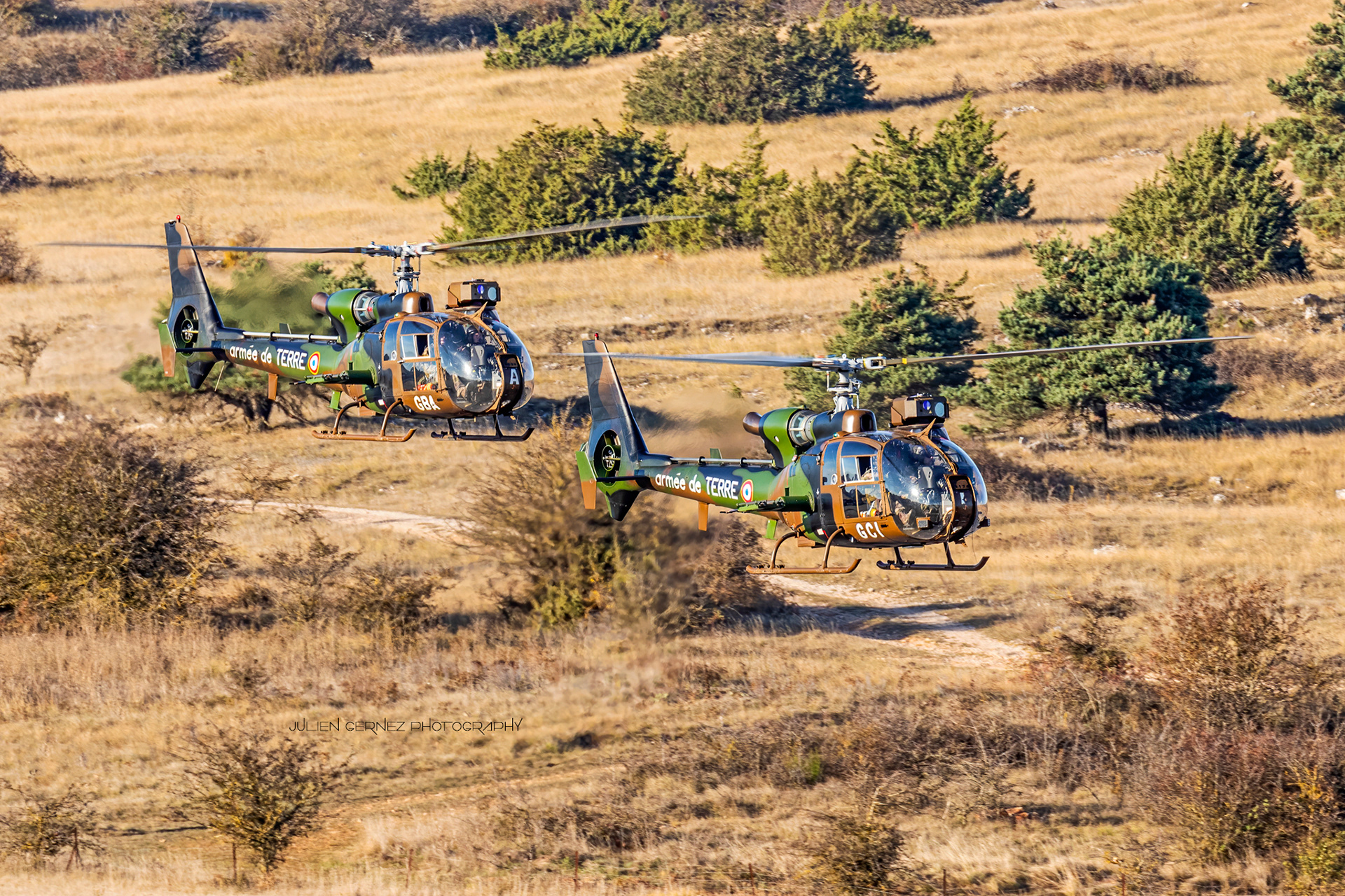 Véritable fer de lance de l’armée de terre dans le domaine de l’aérocombat, la 4e BAC avait déployé pour l’occasion de nombreux moyens héliportés provenant des trois régiments d’hélicoptères de combat (RHC) qu’elle a sous ses ordres, à savoir le 1er, le 3e et le 5e RHC. Le plus gros détachement était assuré par le 1er RHC qui avait établi ses quartiers sur l’aérodrome de Millau-Larzac avec pas moins de quatre Caïman, quatre Tigre et six Gazelle. Le 5e, équipé de deux Cougar, deux Caïman, deux Tigre et deux Gazelle était déployé en pleine nature sur une FOB (Forward Operating Base - Base opérationnelle avancée) du côté de Saint-Affrique et le 3e, avec deux Puma et quatre Gazelle, l’était de son côté aux alentours de Tiergues.