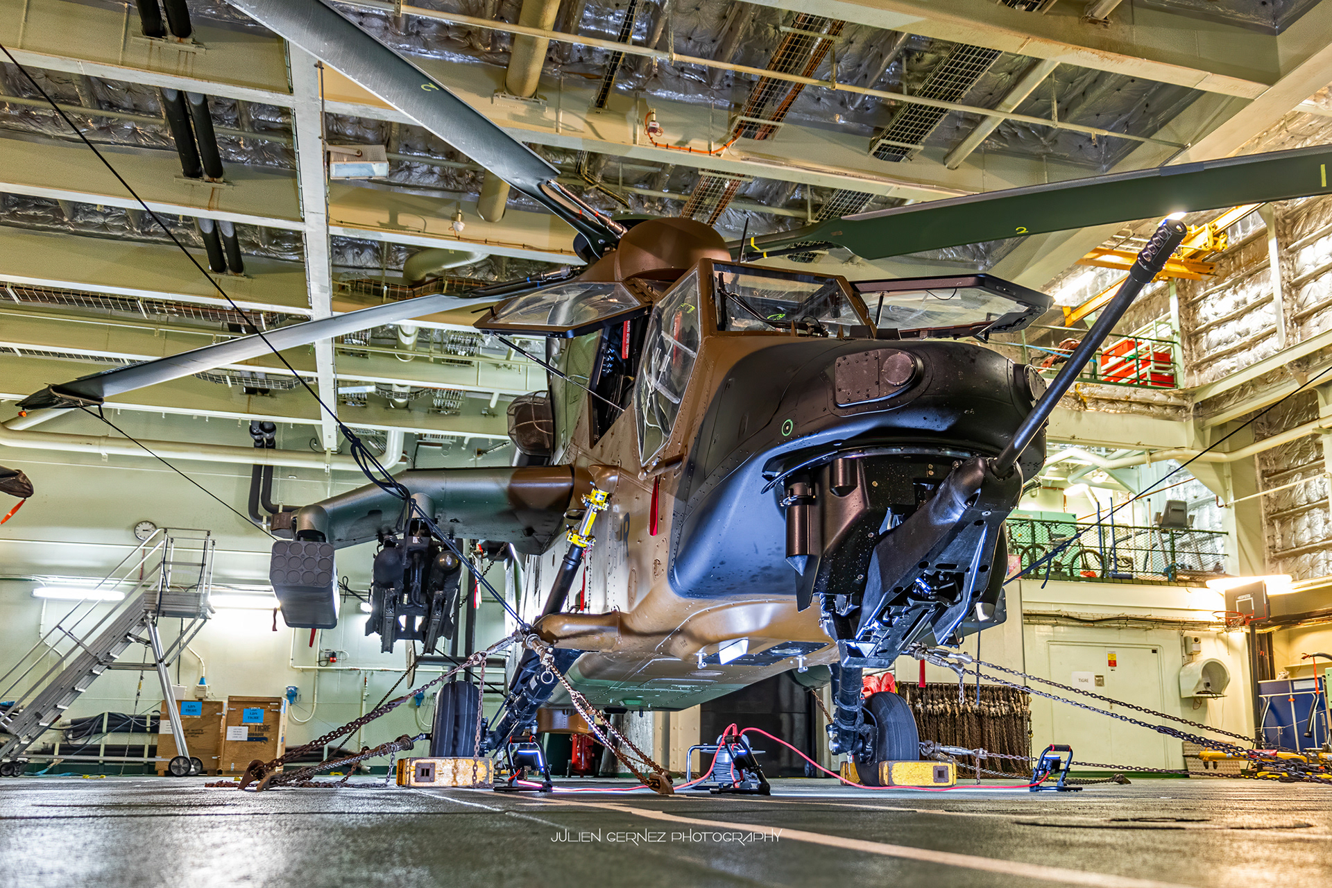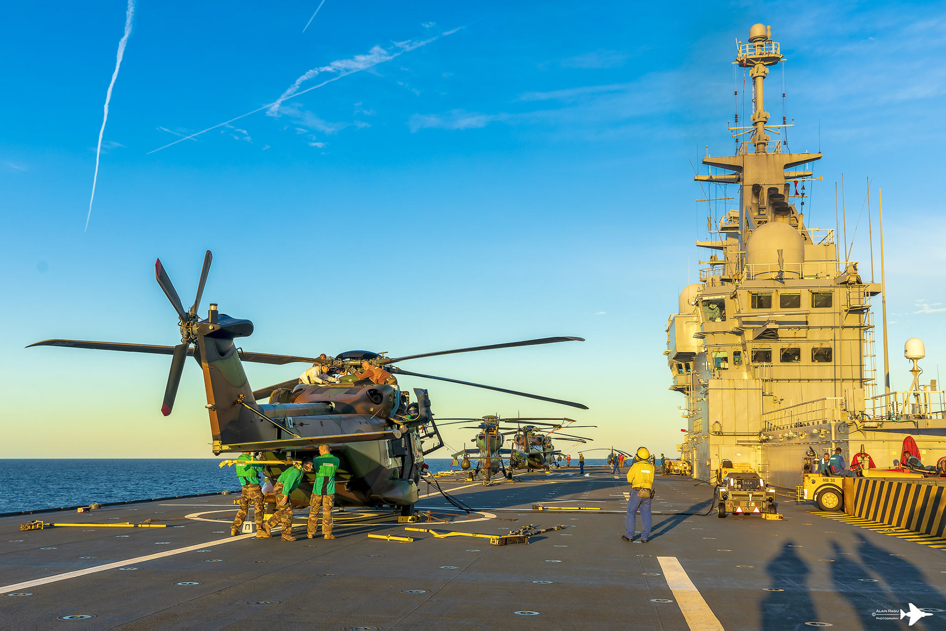 Au sein du GNAM, deux groupes aéromobiles (GAM) avaient été constitués. Le GAM 1, déployé à partir du PHA Tonnerre, comprenait 170 militaires et douze hélicoptères (4 Tigre, 4 Caïman et 4 Gazelle) du 1er Régiment d’hélicoptères de combat (RHC). Le GAM 35, qui opérait depuis le PHA Mistral, était composé de 200 militaires et douze hélicoptères (2 Tigre, 2 Caïman, 6 Gazelle et 2 Puma) provenant des 3ème et 5ème RHC. À savoir qu’aucun équipage « spare » n’était prévu pour toute la durée de l’exercice. Pour mettre en œuvre les 24 hélicoptères, l’ALAT ne comptait donc que sur 24 équipages, pas un de plus, et tous étaient pleinement qualifiés pour évoluer depuis les portes hélicoptères de la marine nationale.