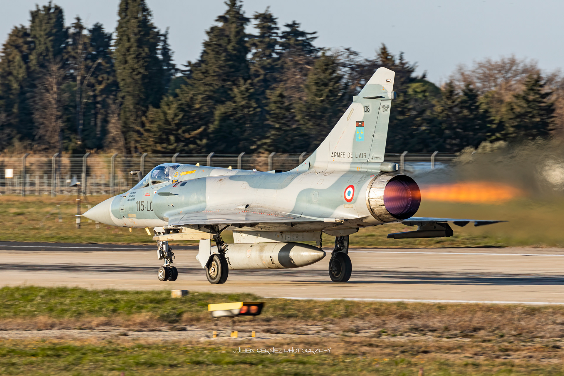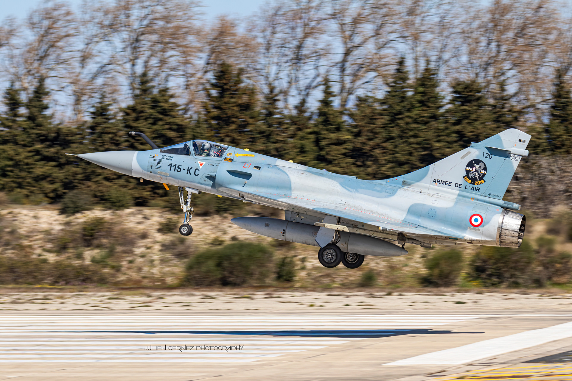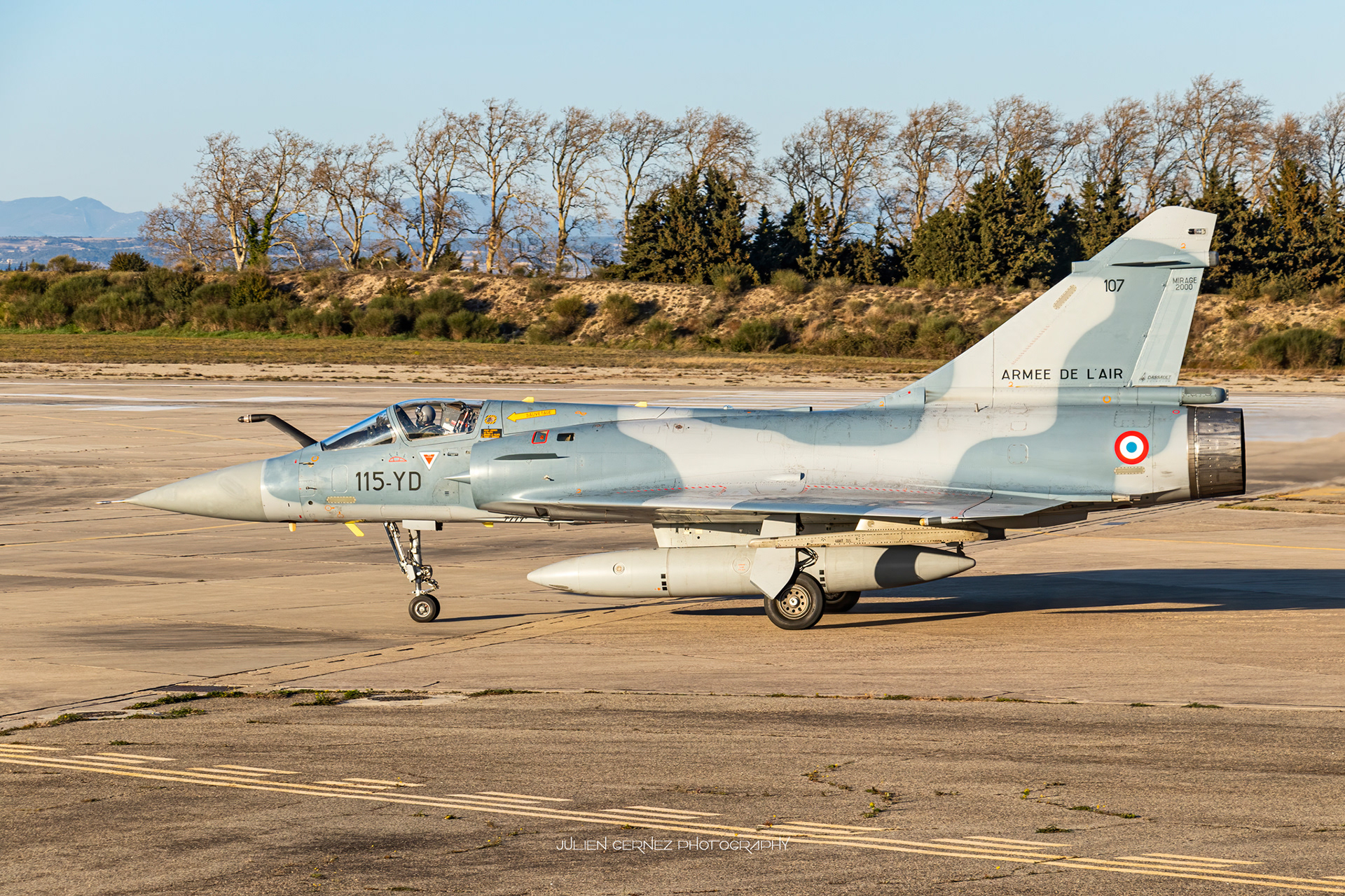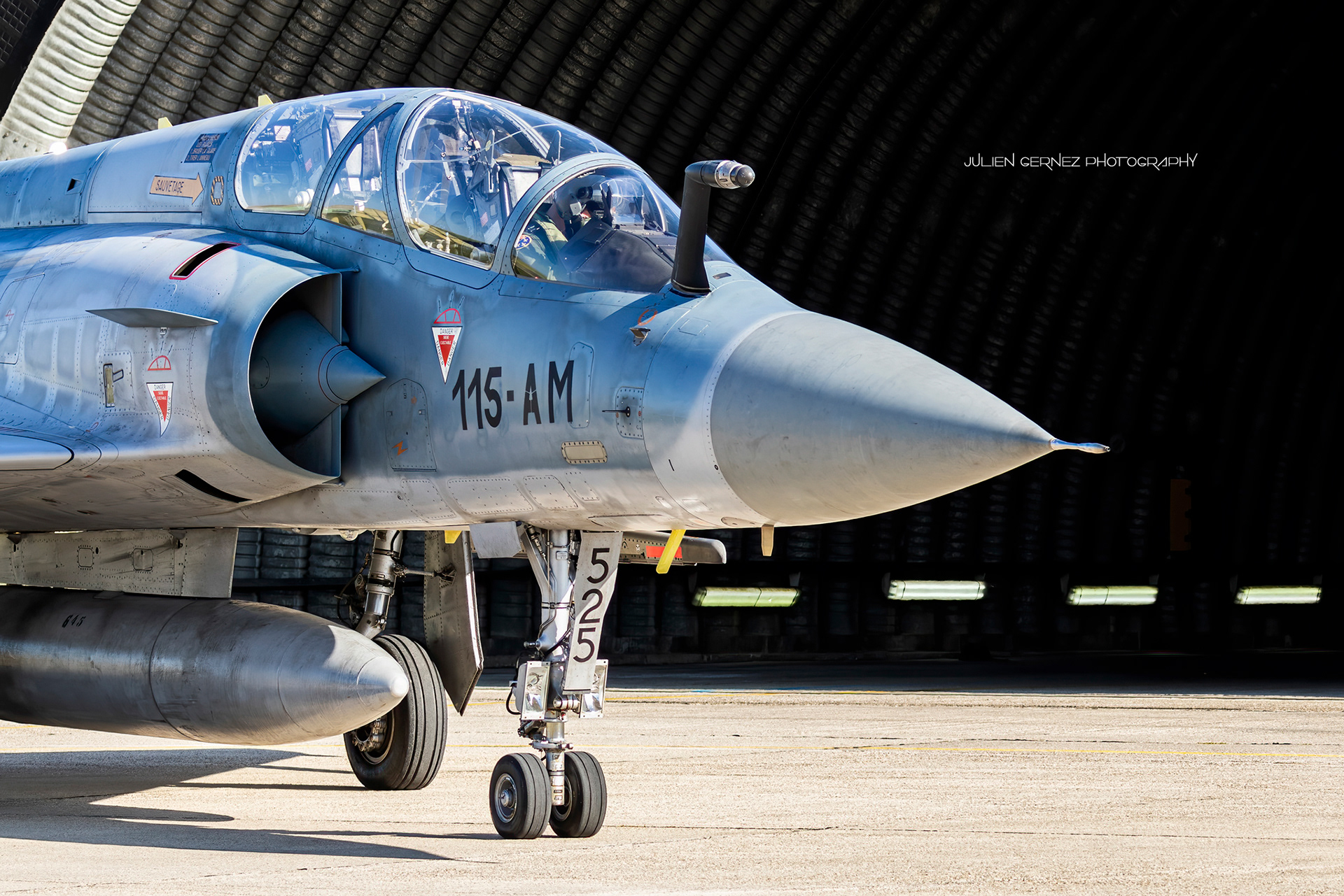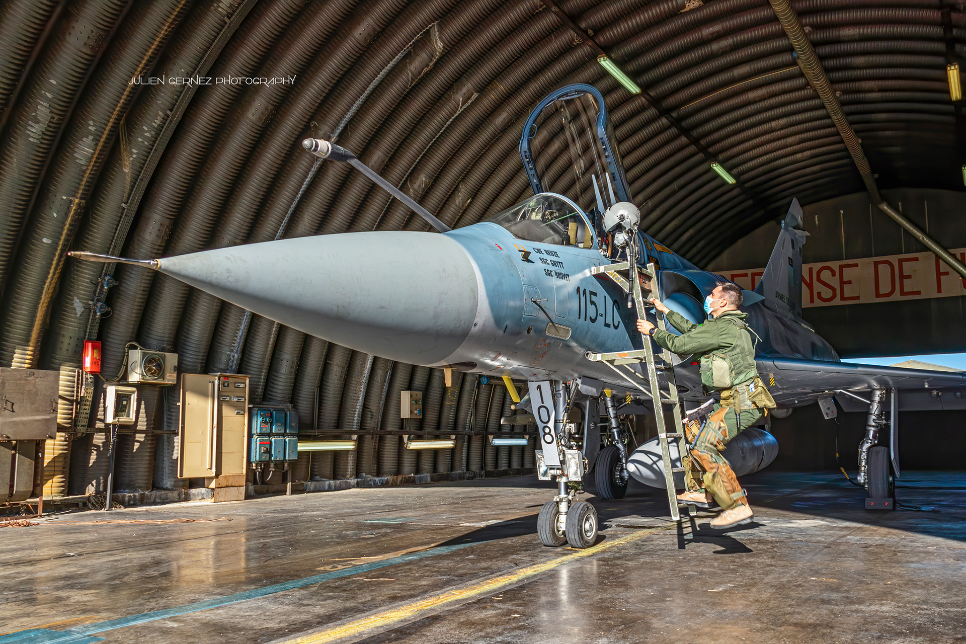 Sur la base aérienne 115, l’EC 2/5 constitue un maillon essentiel de cette protection en assurant la PO pour toute la partie Sud-est de l’hexagone. Deux Mirage 2000C et leur équipage sont ainsi maintenus en alerte H24 et 7 jours sur 7 depuis les locaux de la PO situés à proximité immédiate du seuil de piste. Pour les besoins de cette mission, les 2000 sont armés chacun de leurs deux canons DEFA de 30mm et de deux missiles Magic 2 à guidage infrarouge.