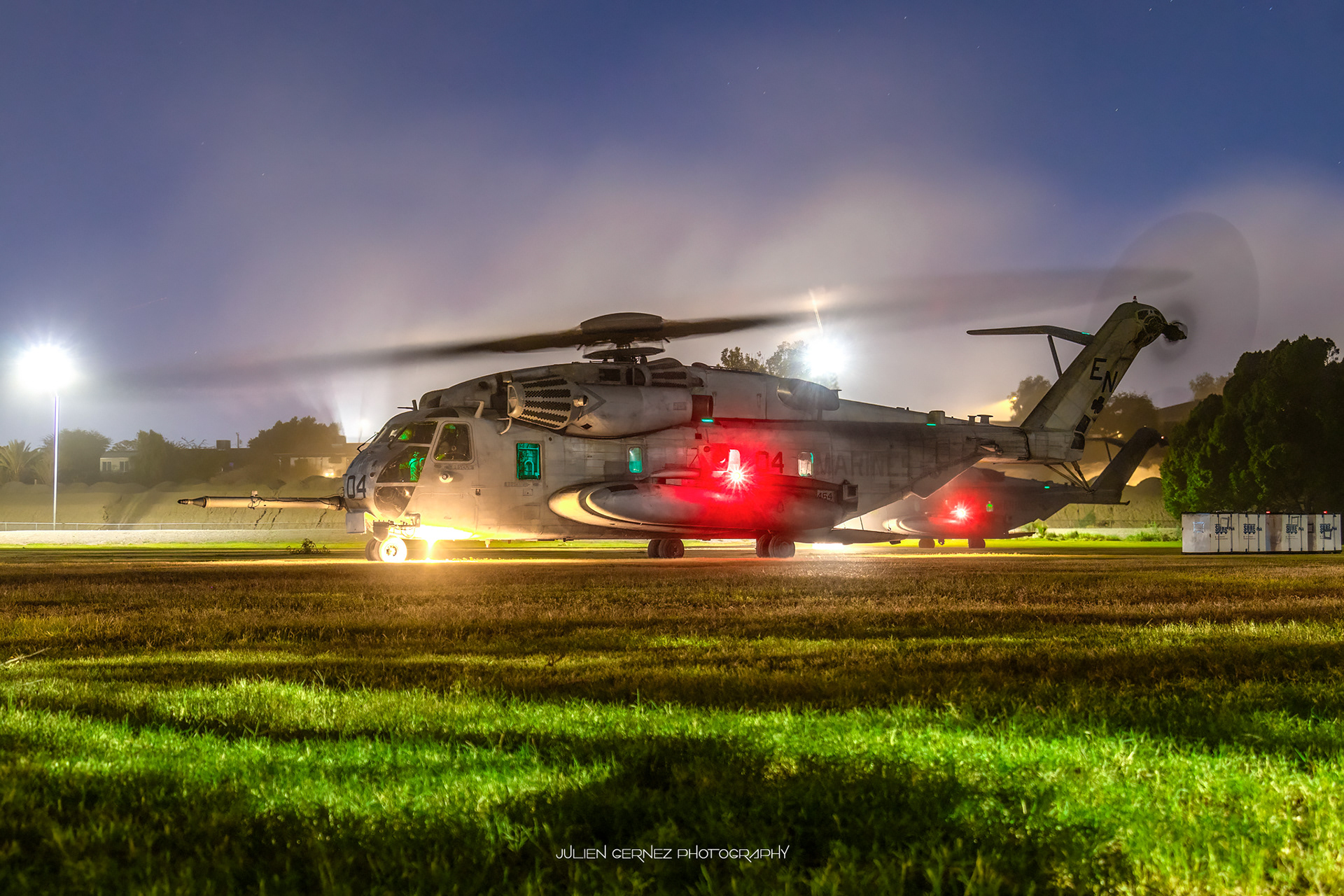 Sur les coups de 20h30, la sixième et dernière rotation fut assurée de nouveau par deux Stallion des "Condors" qui, à leur tour, déchargèrent leur "précieuse" cargaison. Il faisait à cet instant totalement nuit et seul subsistaient quelques lumières provenant des habitations toutes proches ou des éclairages urbains installés non loin de la LZ.