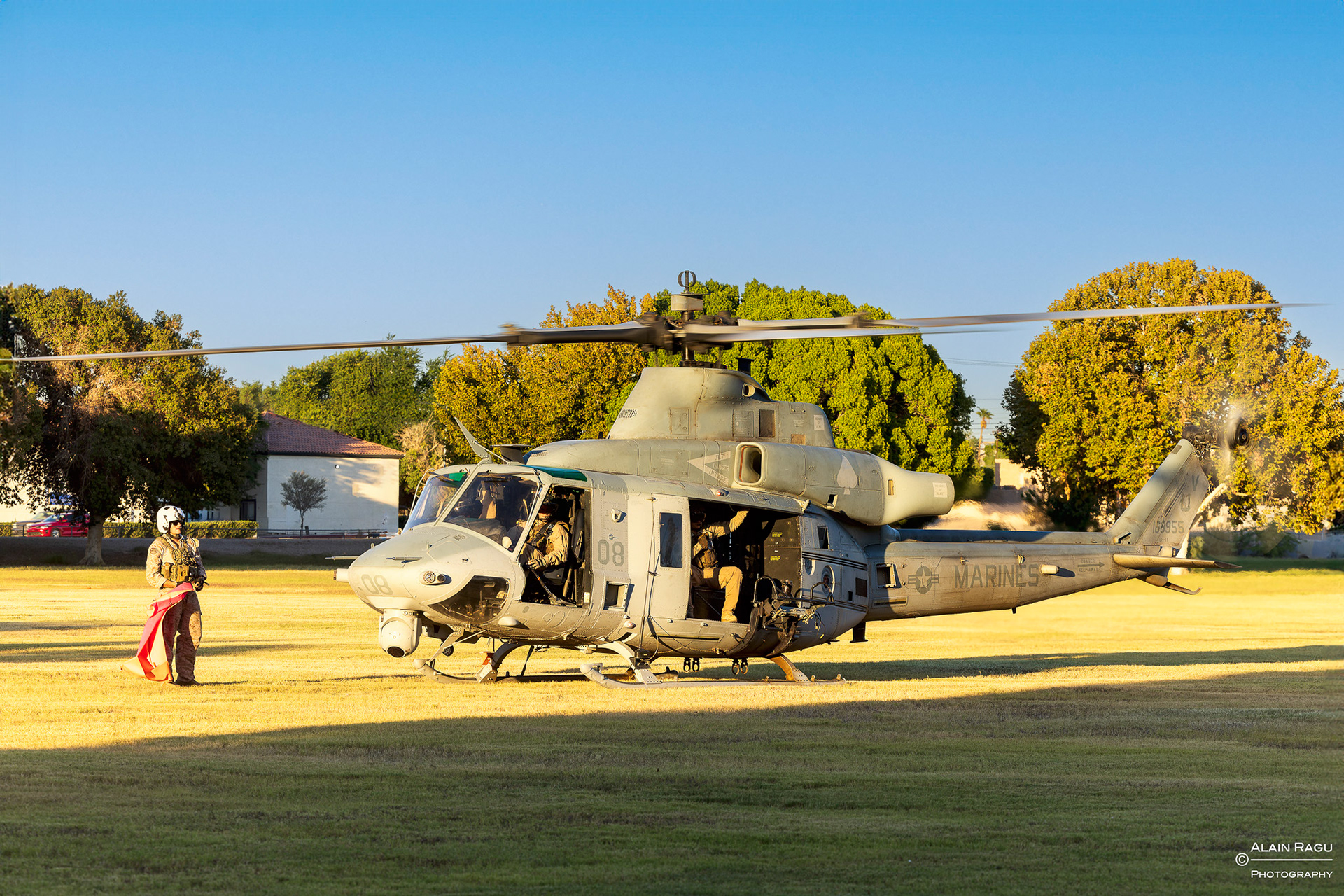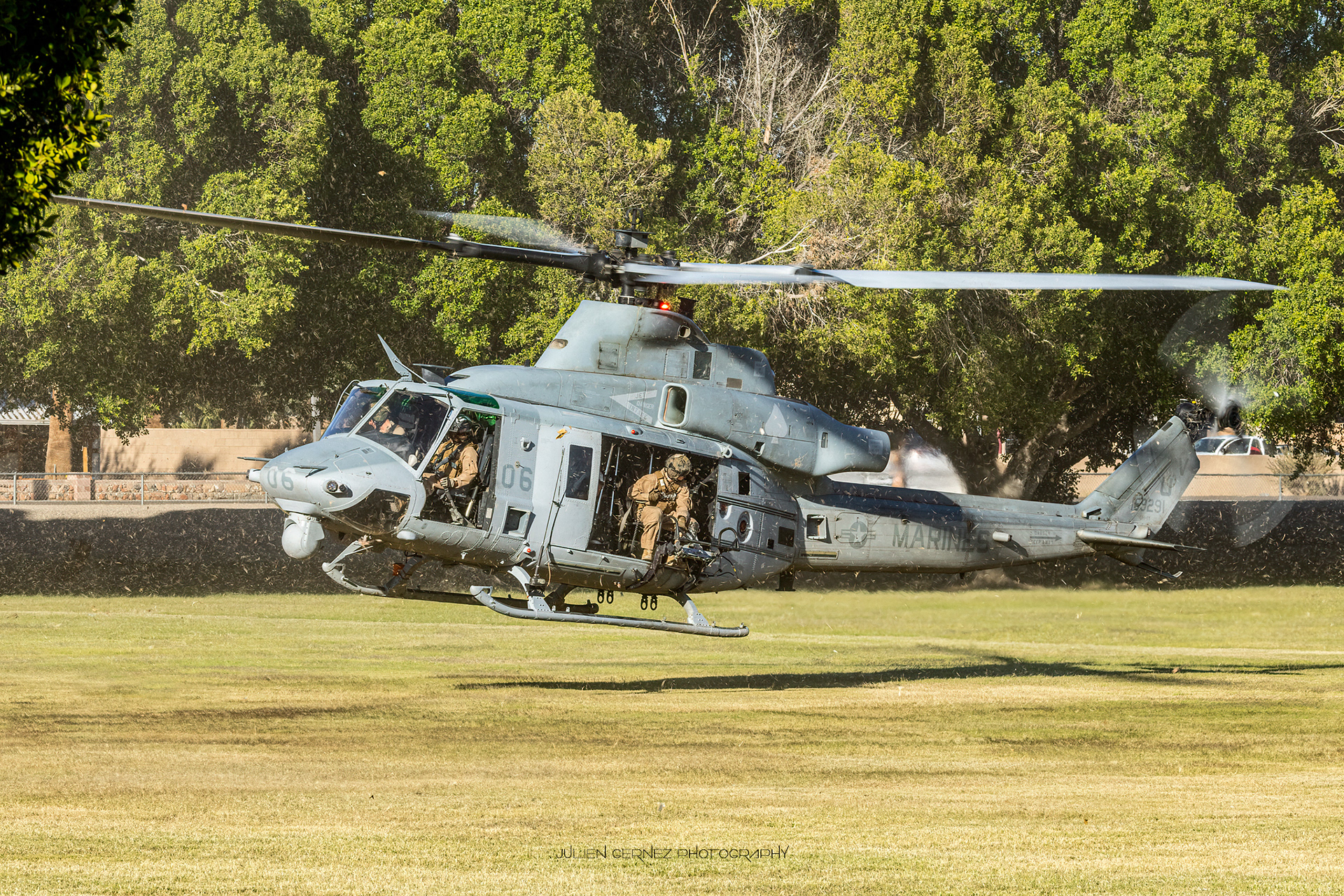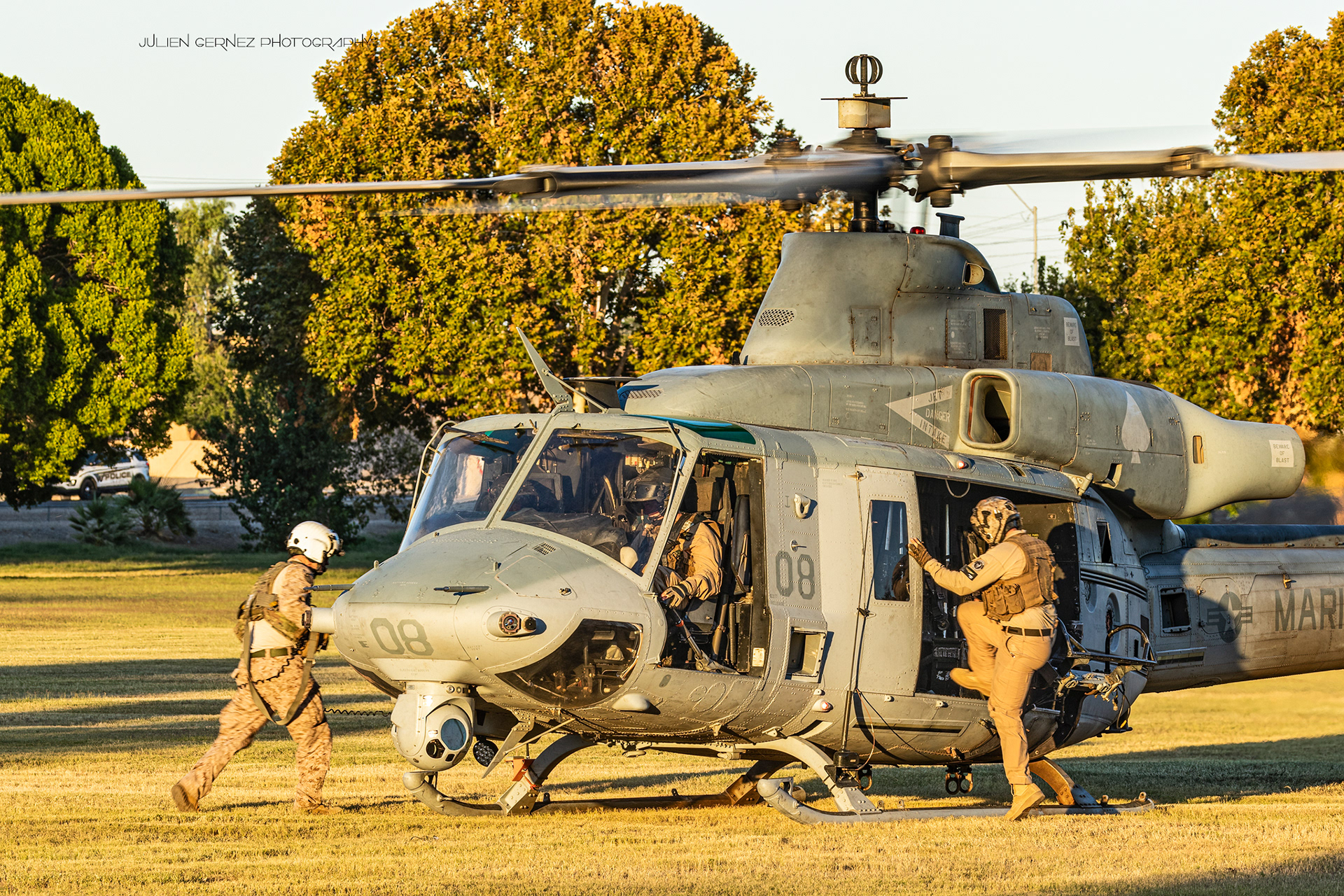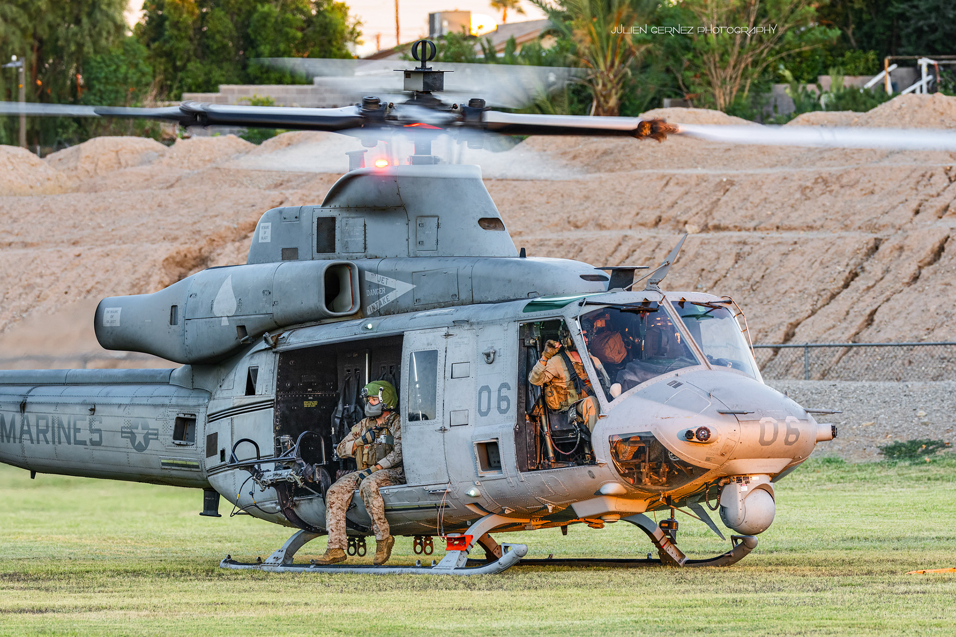 C'est vers 17h30, sous une belle et douce lumière automnale, que débuta l'opération FHA sur la LZ Kiwanis. La première rotation était assurée par deux UH-1Y Venom du HMLA-267 "Stingers" venus déposer un petit groupe de militaires. Très flexibles, les Venom sont essentiellement utilisés pour le transport léger, l'escorte armée, l'évacuation de blessés (CASEVAC) et également comme poste de commandement et de contrôle.