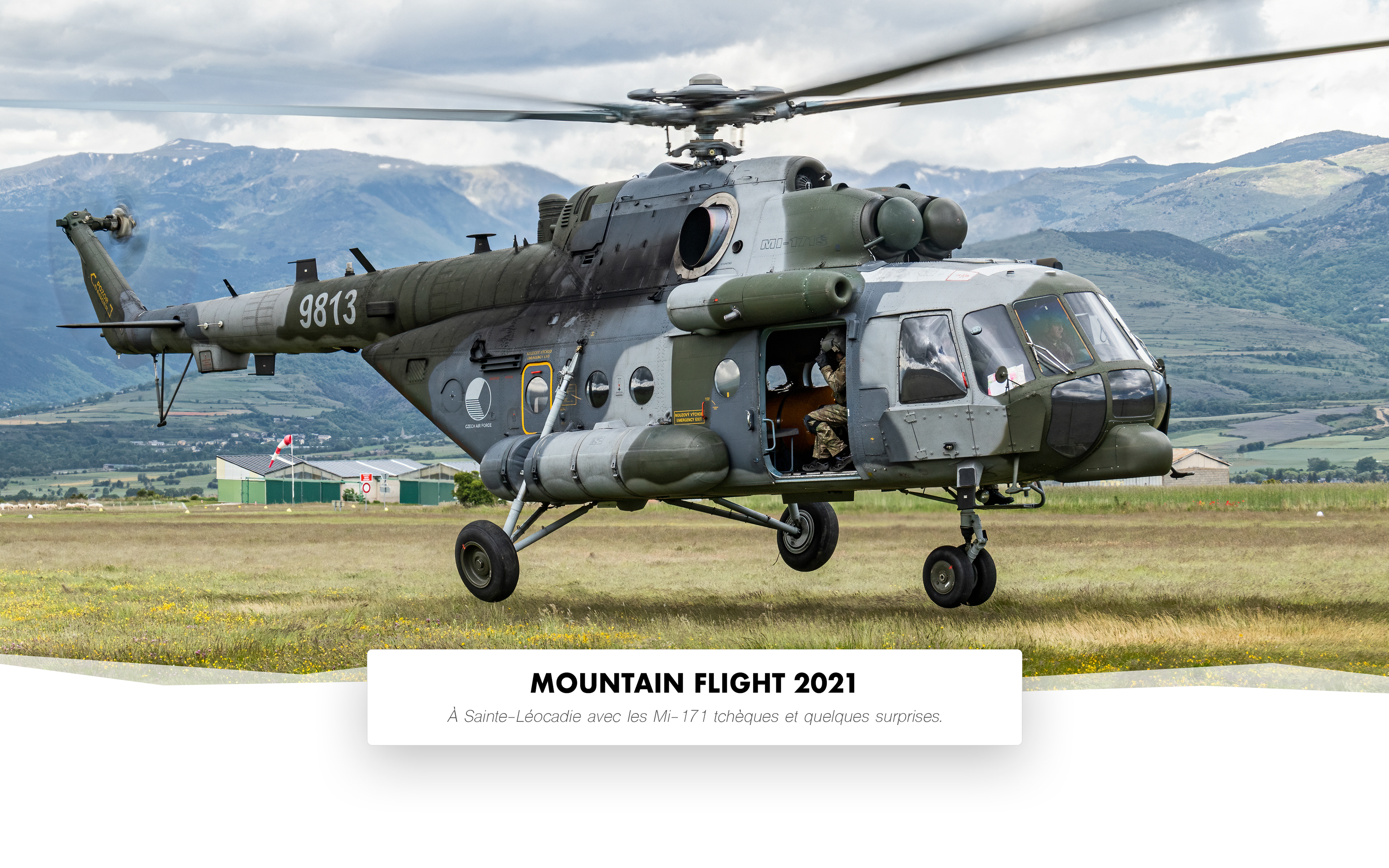 Durant deux semaines, des Mi-171sh de la force aérienne tchèque étaient de nouveau présents au CVM de Sainte-Léocadie dans le cadre de leur campagne annuelle d'entraînement au vol en montagne. Une campagne à petit format toutefois puisque seulement deux Hip avaient fait le déplacement cette année. Le jour de notre visite en Cerdagne, nous avons également pu photographier deux Gazelle et deux Puma de l'ALAT lors de leur arrivée sur le petit terrain catalan. Appartenant au 3e régiment d'hélicoptères de combat (RHC), ces machines revenaient de la région d'Ouarzazate, au Maroc, où avait lieu l'exercice Tafilalet 2021.