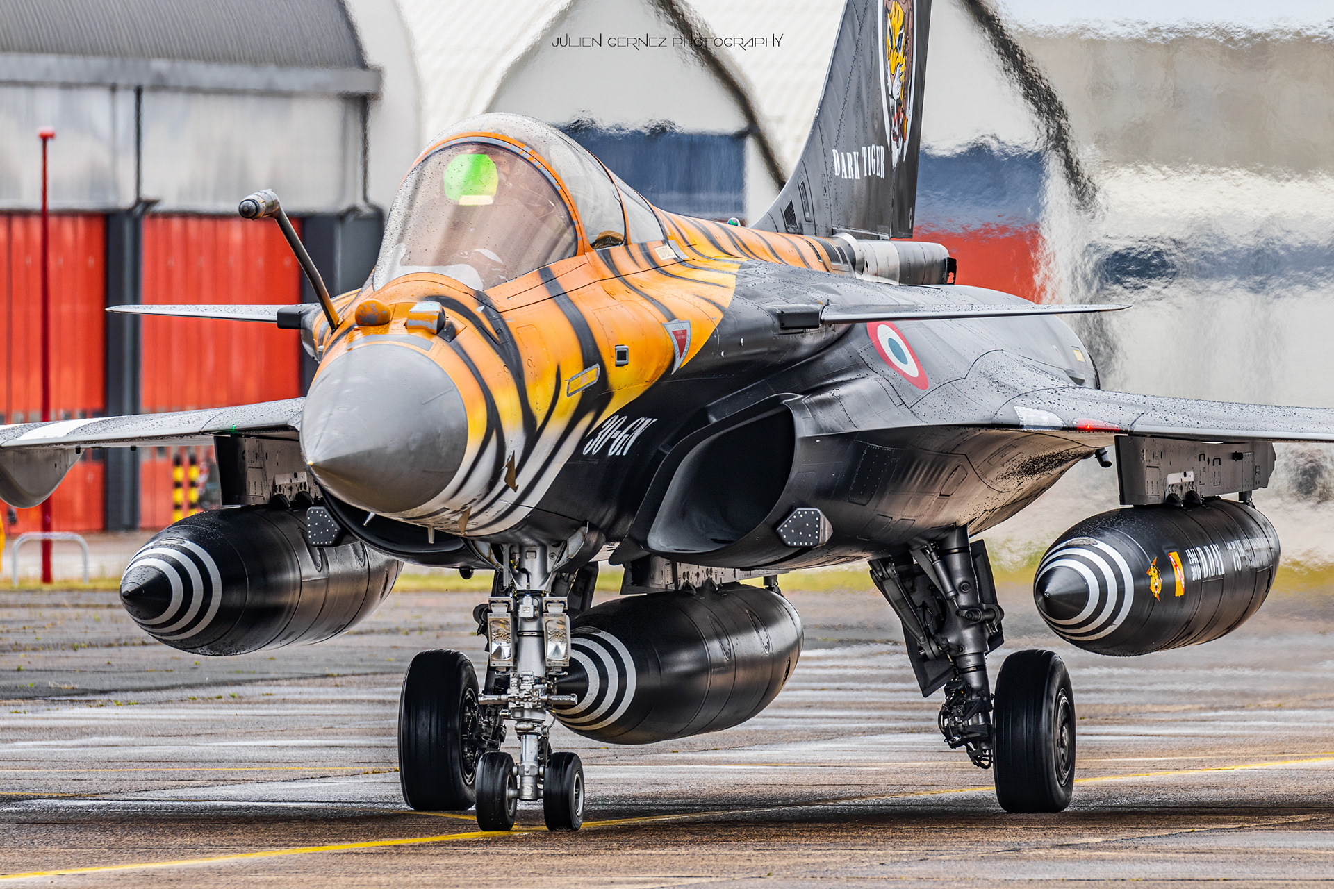 Le NATO Tiger Meet est un exercice militaire unique en son genre, à l’état d’esprit bien particulier et aux traditions bien ancrées. Une de ces traditions veut que chaque escadron peigne pour l’occasion au moins un appareil à l’effigie du Tigre, mais plus encore, il faut si possible que la décoration soit en adéquation avec un thème choisi. Cette année et afin de s’associer à la commémoration des 75 ans du débarquement en Normandie, l’EC 3/30 décida de marquer les esprits avec une décoration ‘Tigre’ rappelant l’opération "Smoke Screen" conduite sur les côtes normandes le 6 juin 1944. Durant cette opération, douze Douglas Boston Mk-IIIA du 342nd Squadron (aujourd’hui EC 3/30 «Lorraine») survolèrent au petit matin les plages de Normandie à très basse altitude afin de créer un écran de fumée destiné à dissimuler les troupes amphibies alliées aux forces allemandes. Le Rafale C n°135 (30-GN), porteur de cette magnifique décoration tigre commémorative, prit pour l’occasion le surnom de ‘Dark Tiger’.
